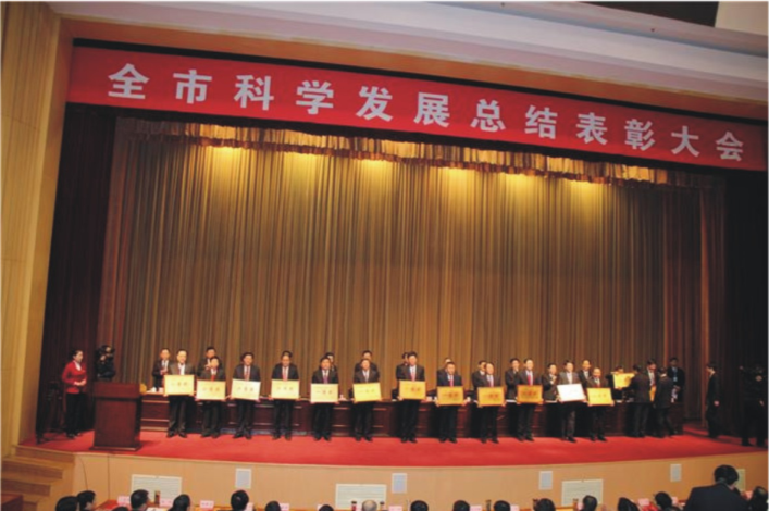 會議表彰了全市科學跨越發展中涌現出來的先進縣區、鄉鎮、部門和企業,魯洲集團榮獲臨沂市委、市政府聯合頒發的“2015年度貢獻大美新臨沂建設功勛企業”。集團執行董事高中法出席會議并上臺領獎。